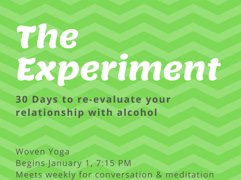 The Alcohol Experiment, a book by Annie Grace is a “30-day alcohol free challenge to interrupt your habits.” Join others who are curious about their habits and making the switch to more sustainable and healthy belief patterns. We’ll meet each week for 45 minutes of conversation and meditation (there is no movement element to this offering).
