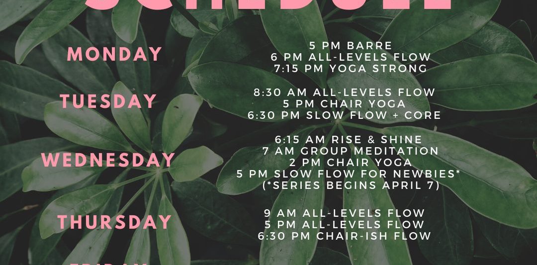• A blended class for folks who enjoy the support of a chair and those wishing for a gentle flow without the up/down movement of the vinyasa All-Levels class. This happens at 6:30 PM on Thursdays.